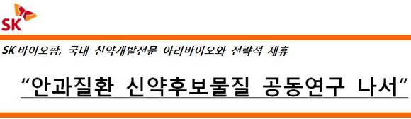 아리바이오의 안과분야 신약개발 역량을 인정받는 것이다.또 제약 분야의 [대기업]과 [중소기업] 간