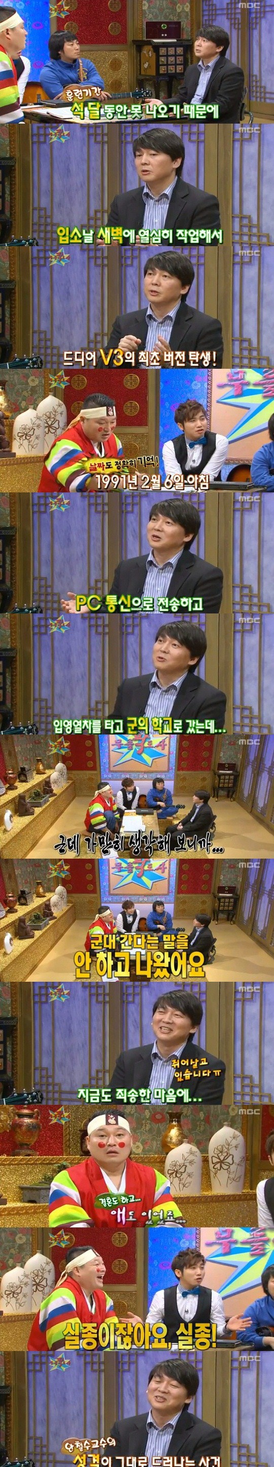 가족들한테 군대 간다는 말을 안 하고 나왔어요.강호동 : 당시 결혼도 하지 않았나요?안철수 : 애도 있었죠. 일에 집중하다 보니 그런 일도 생기더라구요.강호동 : 그건 실종이잖아요?안 의원은 입대 직전까지 <미켈란젤로> 바이러스 백신 개발에 몰두하다,