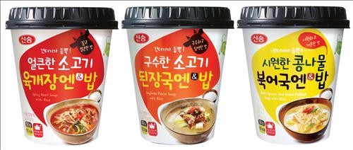 <신송식품>은언제 어디서나 끓는 물만 부어4분 30초만에 먹을 수 있는[즉석국엔 밥 3종]을4일 출시했다.소고기·대파·무·숙주·청량고추가 듬뿍 든얼큰한 소고기 육개장, 소고기·애호박이 아낌없이 들어간구수한 소고기된장국, 콩나물· 황태가 풍부한 시원한콩나물 북엇국 등 3종이다.품질 좋은 국내산 쌀로 지어고온에서 바람으로 정성들여 건조시킨팽화쌀과 집에서 끓인 것처럼 푸짐한 건더기가 듬뿍 들어있다.