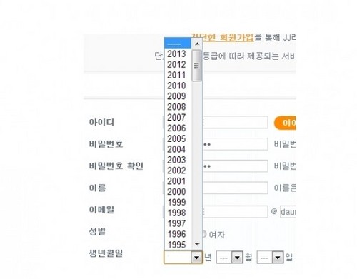 그런데 연도가 상단부터 내림차순으로 돼 있기 때문에 1995년생 보다 나이가 많은 이들이라면 스크롤바를 많이 내려야 자신의 출생년도가 나온다.