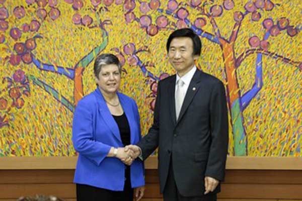 외교부는 <윤병세> 외교 장관과 <자넷 나폴리타노(Janet Napolitano)>