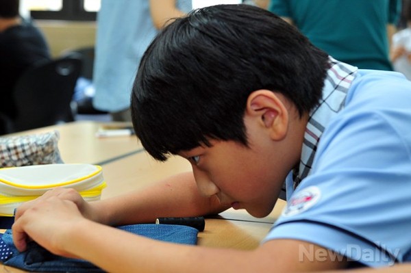 [포토]참전유공자 위해 한땀한땀 바느질하는 언남중 학생들