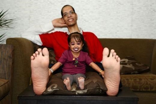 가장 작은 발을 가진 여성은 [세계에서 가장 작은 여성]으로 유명한 인도 출신 조티 암지(19)로 그녀는 현재 61cm의 키를 기록해 기네스북에 등재돼 있다.