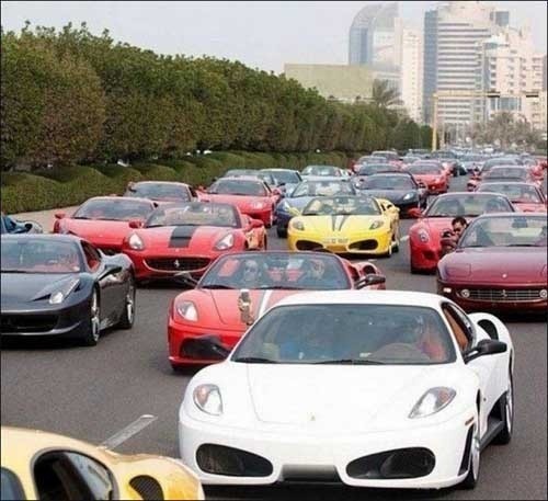 공개된 사진은 두바이의 시내의 출근길 풍경을 담은 것으로 온통 고가의 독일제 스포츠카들이 빼곡하게 늘어선 모습이 눈길을 끈다.