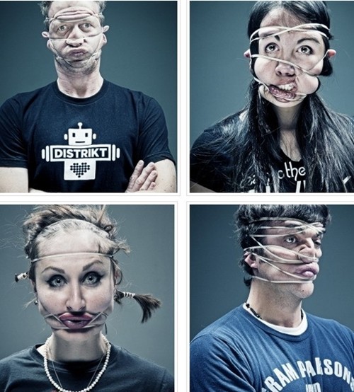 공개된 사진에는 고무줄을 칭칭 감고 있는 다양한 사람들의 모습이 담겨 있다. 고무줄에감긴 사람들의 표정은 마치 괴물처럼 흉측하게 변해 있어 눈길을 끈다.