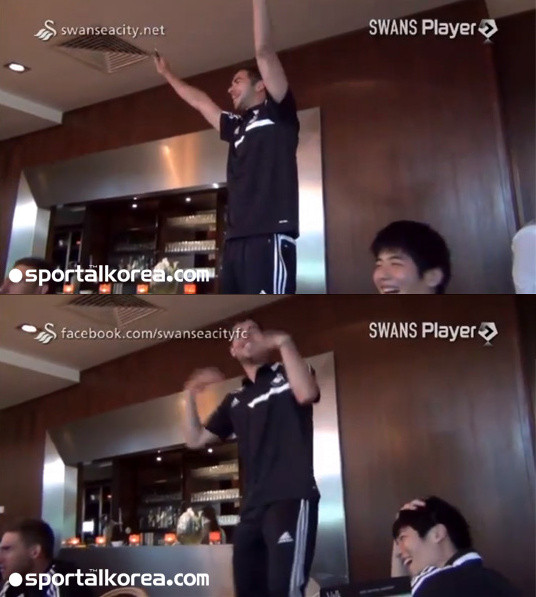 특히, 알레한드로 포수엘로는 싸이의 [강남스타일]을 부르며 말춤을 선보였고, 기성용은 아마트 옆 자리에 앉아 환하게 웃고 있다.