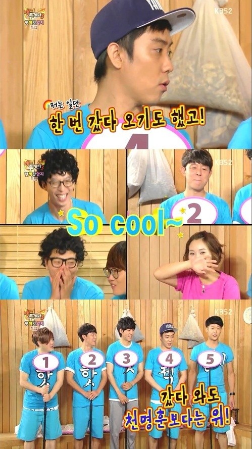 갑작스러운 은지원의 말에 MC들은 “마땅히 할 말이 없다”며 당황하는 모습을 보였고, 신봉선은 “갔다 와도 천명훈보다는 위다”고 지적해 웃음을 자아냈다.