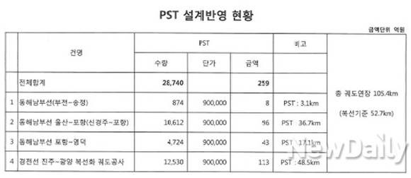 [PSTS]가 향후 착공될 선로공사에 설계반영된 구간은 다음과 같다. -