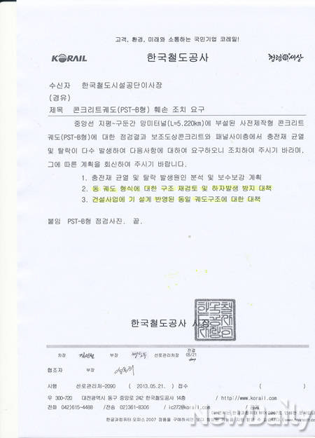 훼손 상태가 어떠하기에 <코레일>이 <철도시설공단>에 이런 공문을 보낸 것일까?