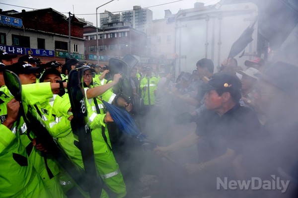 경찰과 몸싸움을 벌였다.