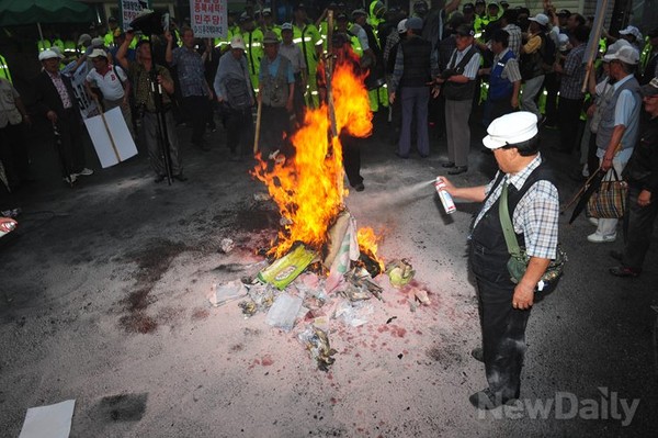 이날 집회에서 보수시민단체 회원들은 [홍익표]의원의 사진을 부착한 인형을 불태우는 과정에서 경찰과 몸싸움을 벌였다.