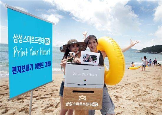 <삼성전자>가 [삼성 스마트 프린터 NFC] 출시를 맞아특별한 장소에서 추억이 담긴 사진을 프린터로 출력해소중한 사람에게 편지로 전하는[프린트 유어 하트] 캠페인을 열었다고 15일 밝혔다.지난 13일 부산 해운대에 마련된 체험 공간에서 피서객들은해수욕장에서 촬영한 사진을 삼성 스마트 프린터만의근거리무선통신(NFC) 프린팅 기능을 이용해손쉽게 출력하고 이를 편지에 담아 가족,친구들에게 전했다.22일에는 논산훈련소에서 캠페인을 진행해삼성 스마트 프린터 NFC의 체험 기회를 지속적으로 제공한다.이 밖에 <삼성전자>는디지털프라자와 갤럭시 스튜디오 등에서NFC 프린팅을 경험할 수 있는 체험 이벤트를지속적으로 진행할 계획이다.삼성 스마트 프린터 NFC는레이저 프린터 업계 최초로 NFC,클라우드 프린팅 등최신 모바일 프린팅 솔루션을 지원한다.