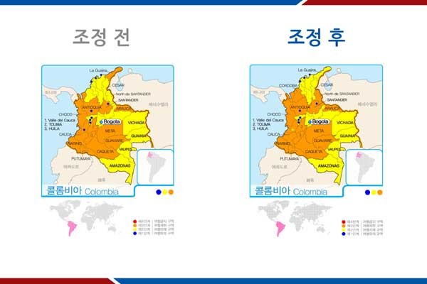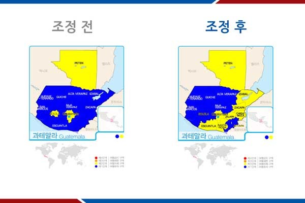 [여행제한 지역(3단계)]에서 [여행 자제지역(2단계)]으로 하향 조정했고,