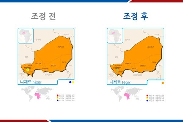 <니아메> 지역을 [여행제한 지역(3단계]으로 지정했다.