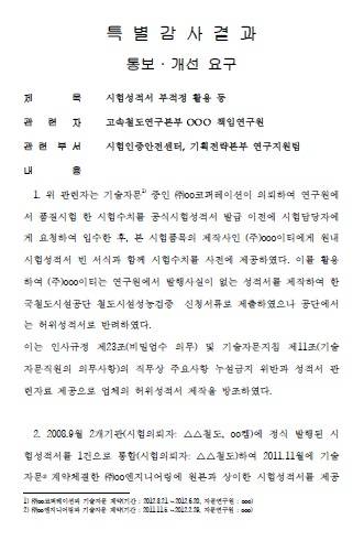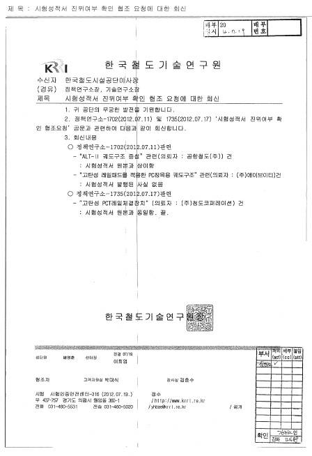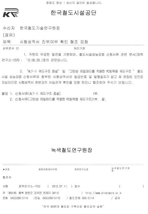 시험성적 결과가 맞는지<철도기술연구원>에 문의를 했다.<철도기술연구원>은 내부 감사를 통해