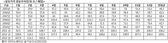 2011년부터 사상 처음으로 [연평균 100달러] 시대에 진입한 상태다.