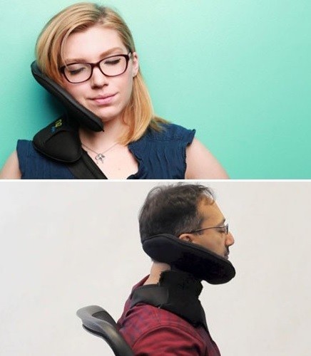 공개된 사진 속 몰래 잘 수 있는 베개는 <냅애니웨어>란 이름의 특수 베게다. 이 베게는 머리의 하중을 어깨, 쇄골 부분이 지탱해 고개를 숙이지 않고도 편안한 자세로 잠을 잘 수 있다.
