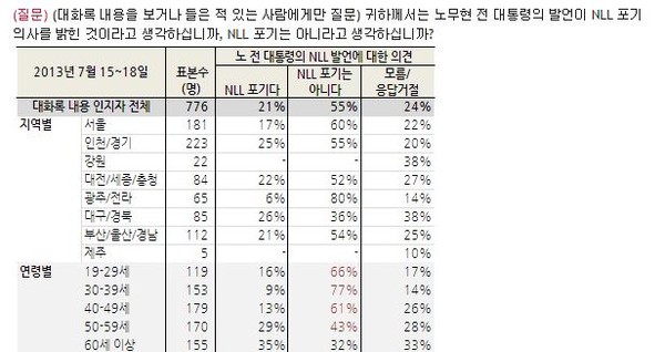 NLL 포기는 아니라고 생각하십니까?->노무현 전 대통령, NLL 포기다 21% vs 아니다 55%