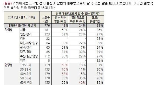 왜곡된 질문유형에 대해 조목조목 반박했다.다음은 <한국갤럽>의 노무현 NLL 발언에 대한