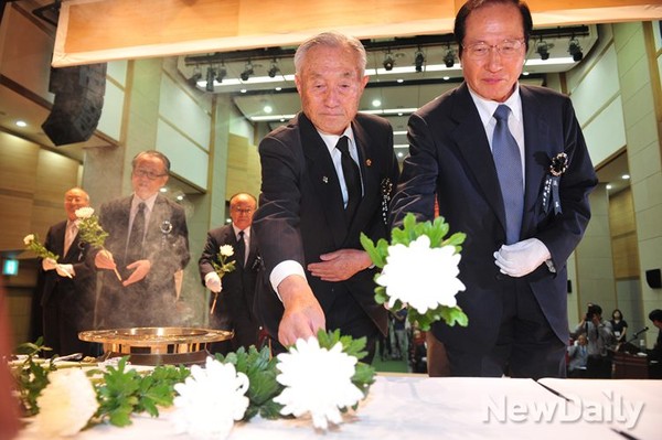 [포토]'건국대통령 이승만 박사 48주기 추모식'서 헌화하는 애국인사들