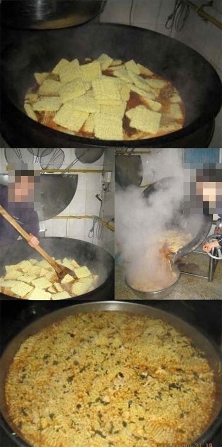 “수십 개의 라면과 스프를 솥에 넣고 주걱을 이용해 면발을 풀면된다”고