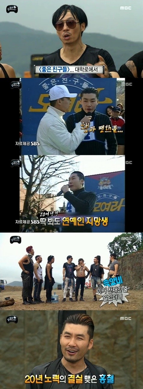 이어 유재석의 설명과 함께 노홍철 20년 전 SBS <좋은 친구들>에 출연해 끼를 펼쳤던 자료화면이 전파를 탔다.