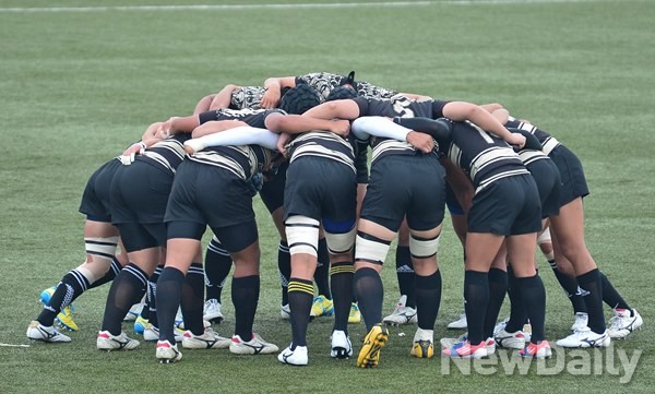 [포토]화이팅 외치는 충북고 선수들(럭비선수권대회)
