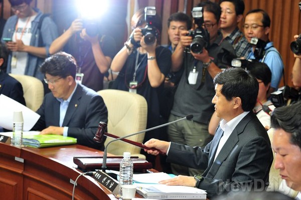 24일 여의도 국회 국가정보원 댓글 의혹 사건 진상규명을 위한 국정조사특별위원회에서 <신기남> 위원장이 회의 개시를 선언하고 있다.