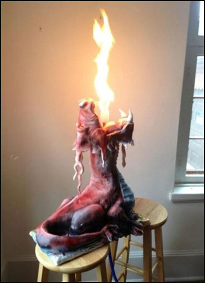 공개된 사진에는 용이 불을 뿜는 모습을 정교하게 표현한 케이크의 모습이 담겨 있어 보는 이들에게 놀라움을 안겼다. [불 뿜는 디저트]는 영화 <호빗>의 공식 트위터에 소개된 것으로 영화 팬이 아들의 생일을 기념해 제작한 것으로 알려졌다.