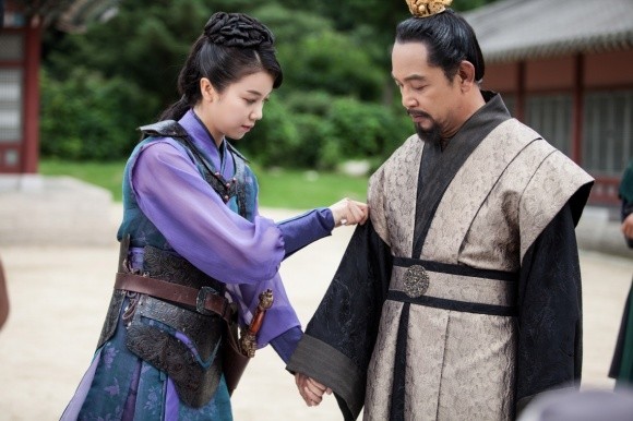 김옥빈은 김영철의 손을 꼭 잡고 다른 한 손으로는 옷매무새를 만져드리고 있다. 언제 어디서나 왕의 위엄을 세우길 바라는 딸의 효심이 고스란히 느껴진다.