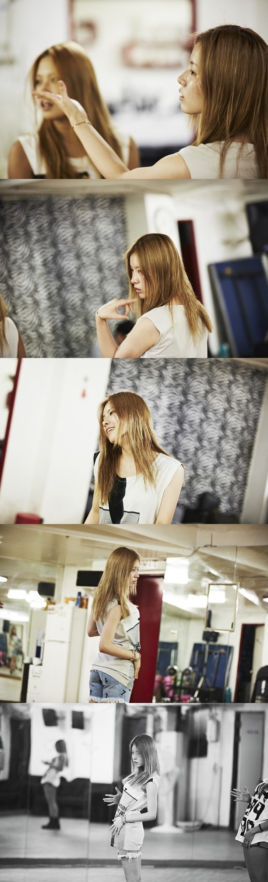 공개된 사진 속 김예림은 화장기 없는 민낯으로 데뷔곡 [올라잇](AllRight) 댄스 연습을 하고 있다. 김예림은 흰색 티셔츠와 청바지의 편안한 복장에도 날씬한 몸매와 자체발광 미모를 자랑했다.