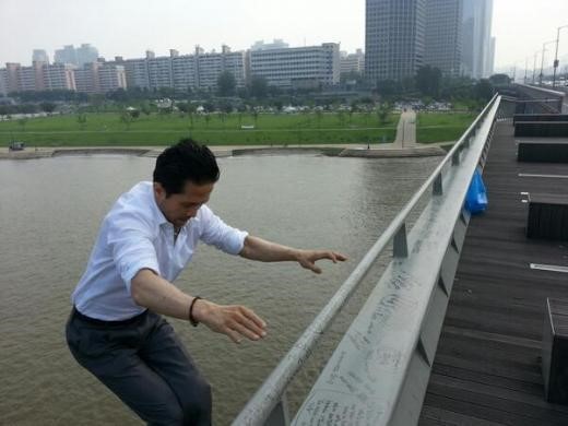 실제로 한강 다리에서 뛰어내린 것으로 보인다.