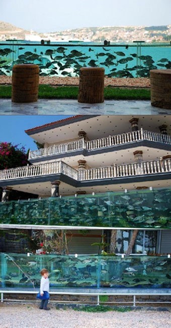 공개된 사진 속 호화로운 저택 주변을 담장이 아닌 바다를 그대로 옮겨온 듯한 거대한 수족관이 둘러싸고 있는 모습이다.