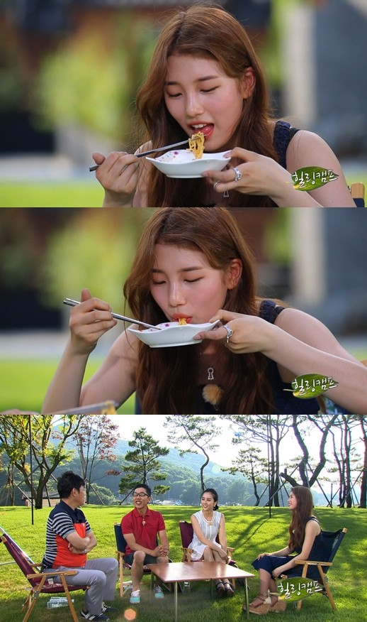 수지가 라면 먹방을 선보인다.미쓰에이 수지는 최근 진행된 SBS <힐링캠프 기쁘지 아니한가>(이하 힐링캠프) 녹화에서 이경규가 손수 끓인 라면을 폭풍 흡입했다.