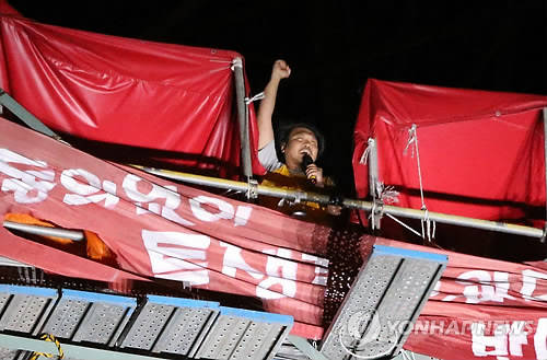 철탑을 [불법점거]한 채 농성을 이어가고 있다.