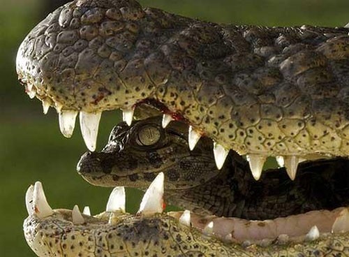 악어 입속 새끼 악어가 포착됐다.영국 일간지 더 선은 지난 28일(현지시각) 아르헨티나 산타페에서 촬영한 카이만 악어의 사진을 공개했다.