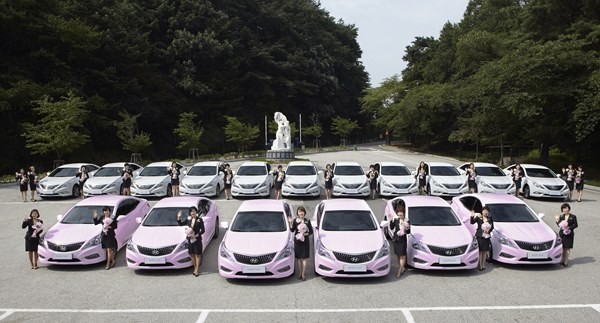 세일즈 실적에 따라 화이트 NF 소나타, 핑크 그랜저XG, 핑크 벤츠를 수여하고 있다.