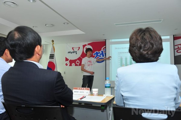 새누리당이청년들의 목소리를 정책에 담기 위해<청년공책(청년이 만든 공감 정책)>공개 발표회를개최했다.새누리당 청년정책국은31일 오후 여의도 당사에서공모전 발표회를 갖고가장 우수한 팀을 선정해상금을 수여했다.이날 공모전에는새누리당 이혜훈 최고위원, 안종범 정책위부의장전희재 사무부총장, 오신환 중앙청년위원장 등이심사위원으로 참석했다.공개 발표에서는전국에서 응모한 102팀 중 엄선된 5팀이치열한 경쟁을 펼쳤다.대상(200만원)의 영광은청소년들의 역사의식 함양과 일자리 창출 정책을 제안한<하이스토리텔러>팀(김나영, 전아림, 정유희, 하미림)에게돌아갔다.