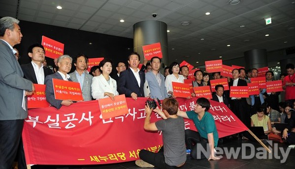 [포토]안전 불감증 이대로 괜찮은가?, 새누리당 안전점검 특위 서울시 부실공사 연속사고 규탄대회