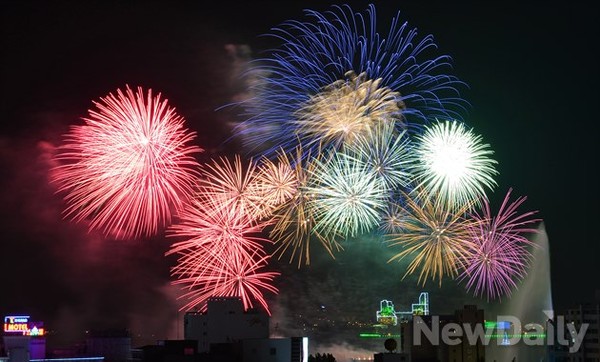 [제10회 포항국제불빛축제]의 화려한 불빛이3일 저녁 경북 포항시 북구 영일대해수욕장 일대를 화려하게 수놓았다.