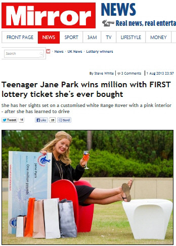 (17세 소녀 처음 구입한 복권, 사진=미러 홈페이지)