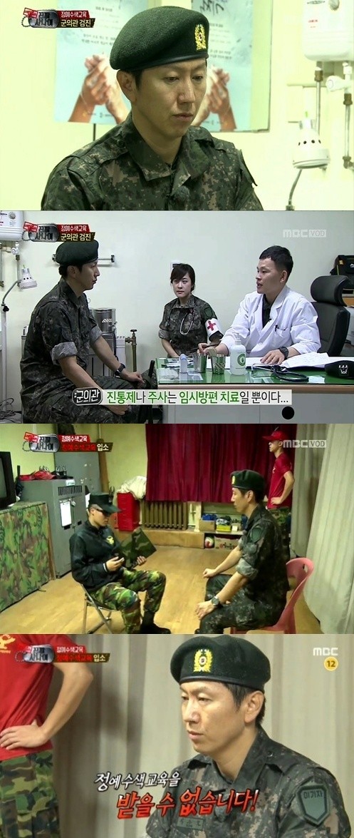 하지만 김수로의 어깨를 만져보던 군의관은 “표정을 보면 참는 게 보인다. 이 상태로 무리한 운동과 급격한 사용을 하게 되면 어깨가 완전히 파열될 수도 있다”며 퇴소를 권고했다.