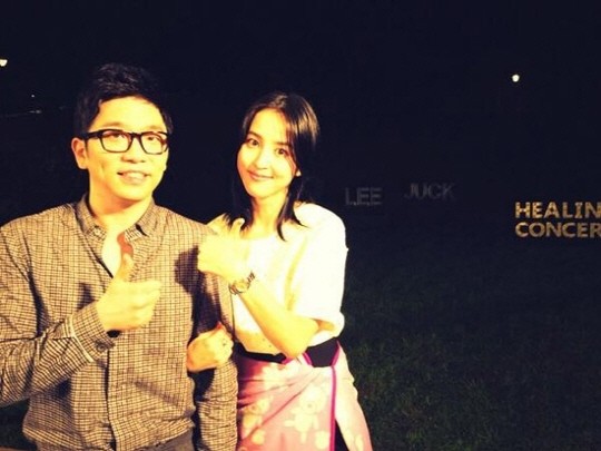 공개된 사진 속 이적은 SBS <힐링캠프> MC 한혜진과 다정하게 팔짱을 낀 채 엄지손가락을 들어 올리며 미소 짓고 있다. 특히, 한혜진과 이적의 머리크기가 2배 가까이 차이 나 웃음을 자아냈다.