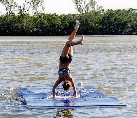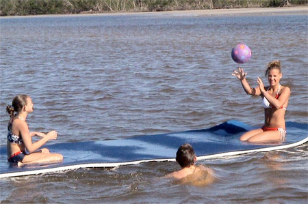 건장한 성인 10명이 올라타도 뒤집어지거나 가라앉지 않는 놀라운 위력을 발휘한다.당연히 이 <워터매트> 위에선