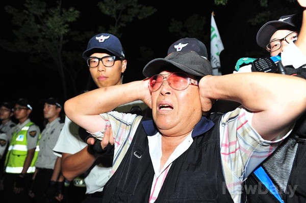 사진은 경찰의 비민주적 행동에 항의하는 <대한민국어버이연합> 회원.