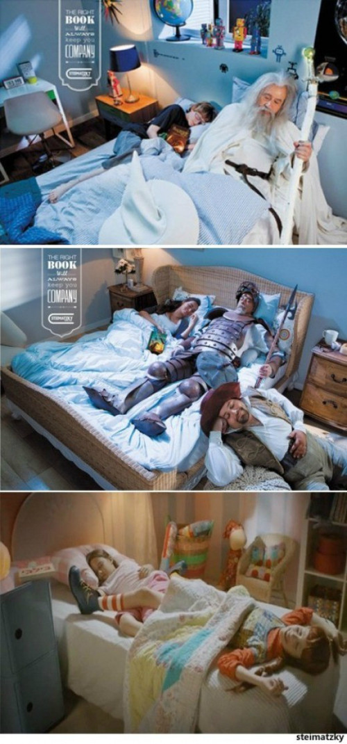 이는 이스라엘 출판사가 어린이들에게 독서의 중요성을 일깨워 주기 위해 만든 광고로 “책을 읽으면 책 속의 주인공들과 친구가 될 수 있다”는 메시지를 전하고 있다.