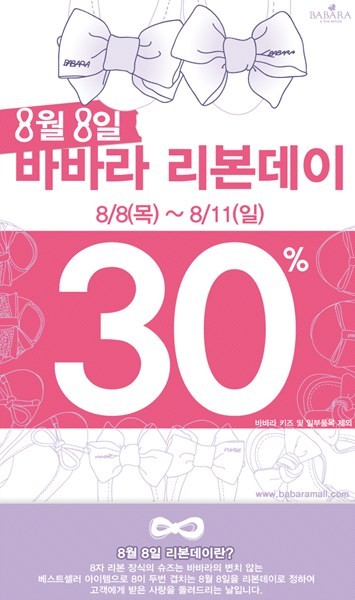 [리본장식 슈즈]의 8자 모양이 두번 겹치는 8월 8일로,