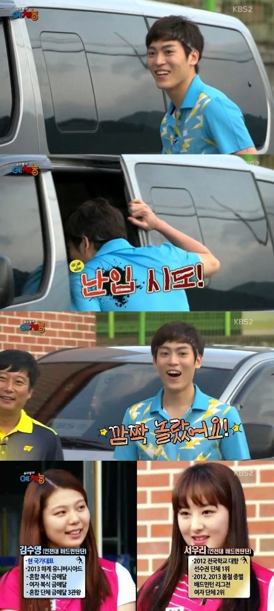 이날 제작진은 “차 안에 선물이 들어있다”며 예체능 팀에게 차문을 열어볼 것을 권했다. 차 안에는 미녀 국가대표 배드민턴 선수 김소영, 인천대학교 선수 서우리가 타고 있었다.