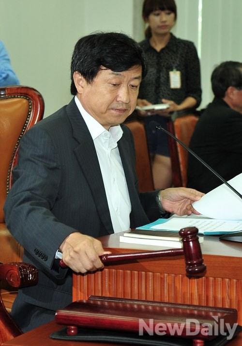 국정원 국조특위 <신기남>위원장이 7일오후 국회에서 열린 국정원 국조특위에서 의결을 알리는 의사봉을 두드리고 있다.