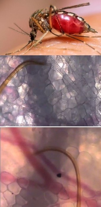 모기는 쥐의 살갗에 앉은 뒤 쥐의 세포를 뒤지다가 혈관을 찾아내 주둥이를 직각으로 꺾어 찔러 넣고 피를 빨아들였다. 특히, 모기는 유연한 주둥이를 이용해 한번에 쥐의 살을 뚫고 혈액을 흡혈해 충격을 줬다.